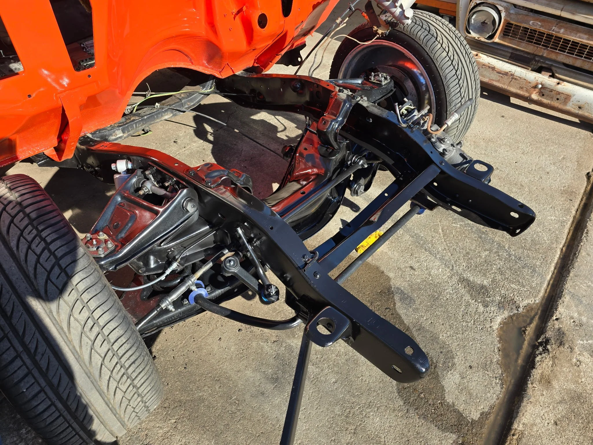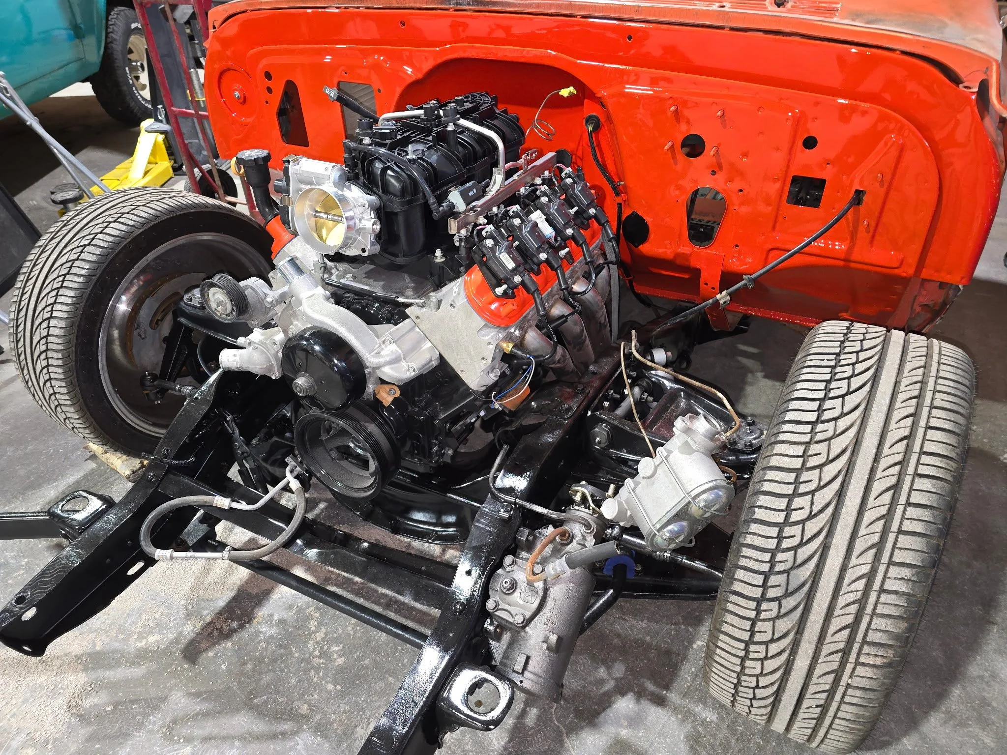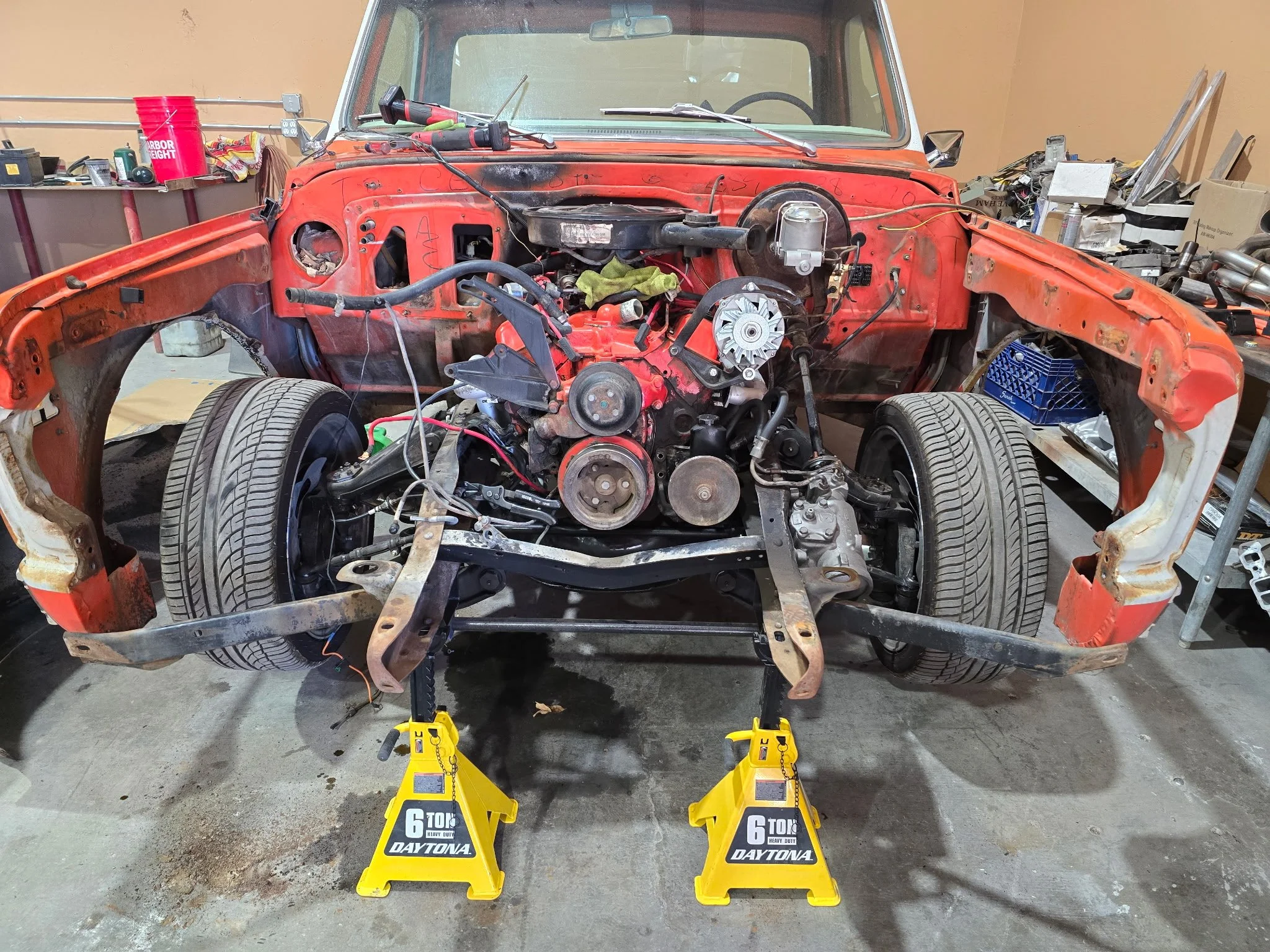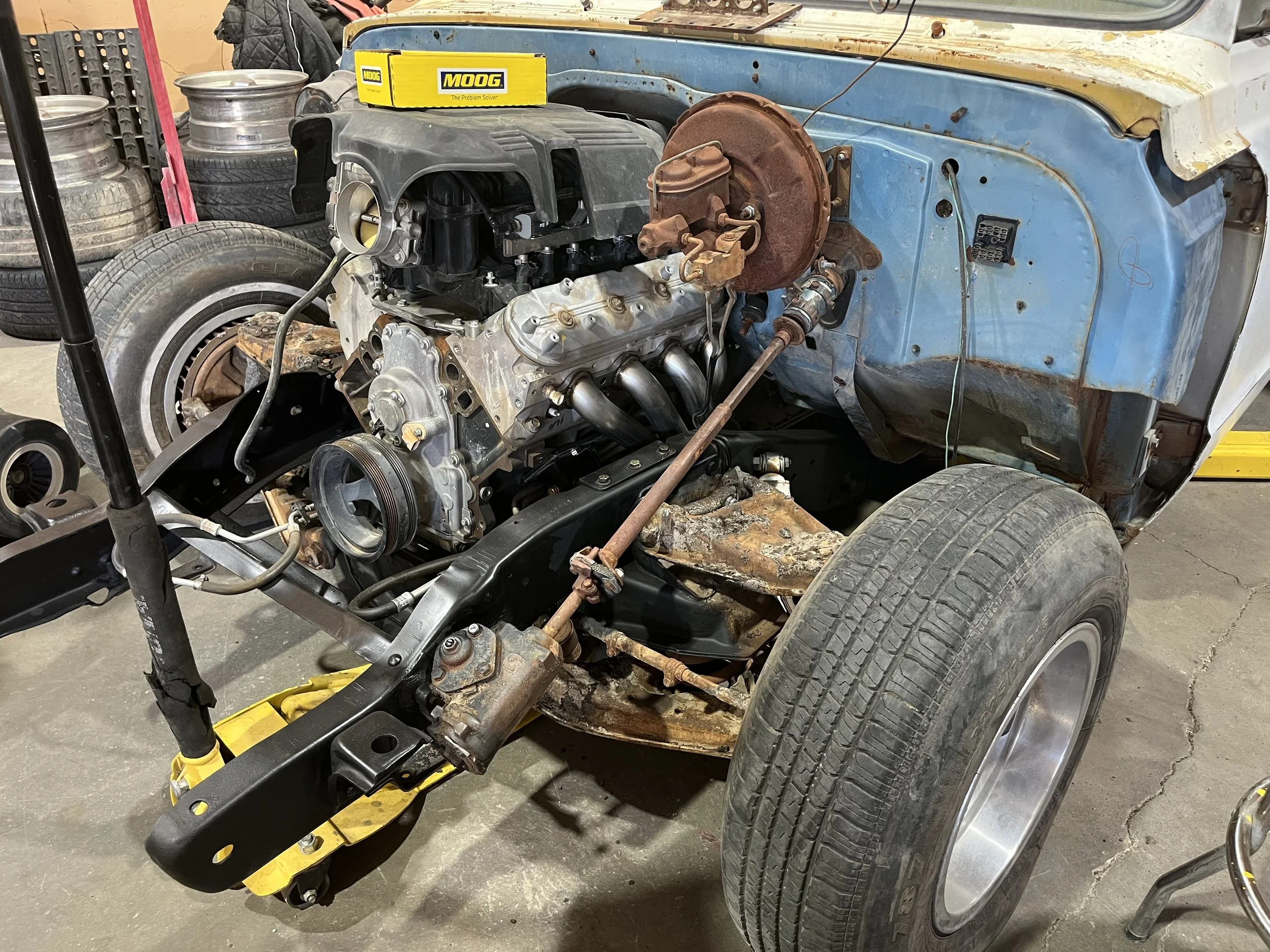 As of the time of this writing (early April, 2025), the fun stuff is about to begin at SWRC with Josh and Andy. But first, some pics of the “before” status. And these are relatively tame. See, while the outward appearance of “The Move” was baller from the first day I saw it, pretty much everything underneath this rig was t-i-r-e-d. And WORN. So the first “Phase” as I call it, was about all steering bushings, tie-rods and balljoints. Also rebuilding the power steering box. And in back, a new pinion seal, cover seal, and TrueTrac™ posi unit for the factory 3.73 gears). Starting in May, “The Move” is getting an LS-swap. The right way. Nothing crazy in the horsepower department, but everything done clean and tight.